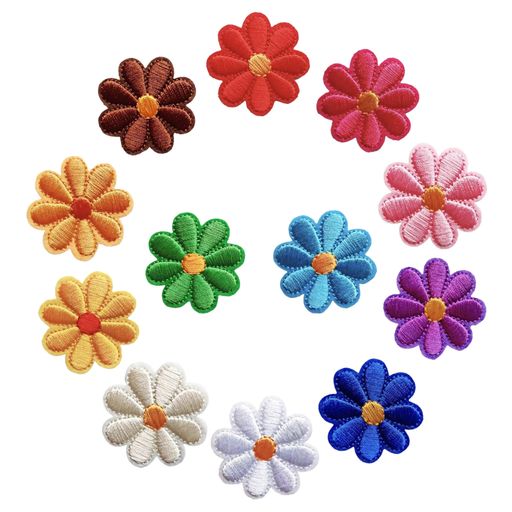 ■WATASHINO ワッペン アイロン アップリケ 花 4cm 12枚セット 女の子 子供 刺繍 かわいい (MIX? 紫・水色・白)