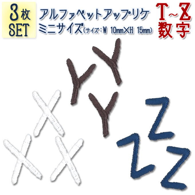 ■文字ワッペン アルファベット ミニ T〜Z 数字 3枚 名前 アイロン 男の子 女の子 名入れ お名前 文字 アップリケ CP