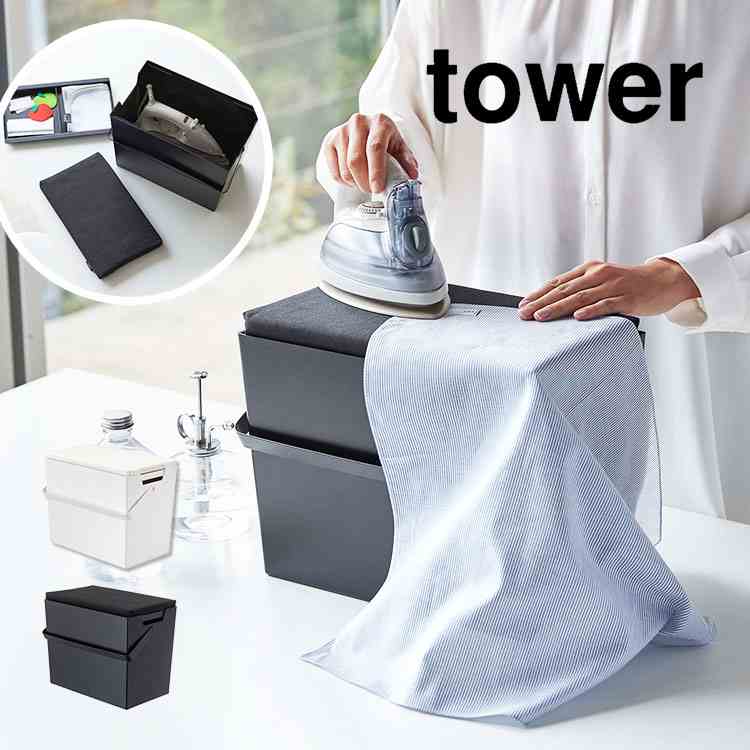 ■アイロン掛けできる蓋付きアイロン収納ケース 山崎実業 タワー アイロン 収納 アイロン台 コンパクト 持ち手付き 持ち運び アイロン掛け