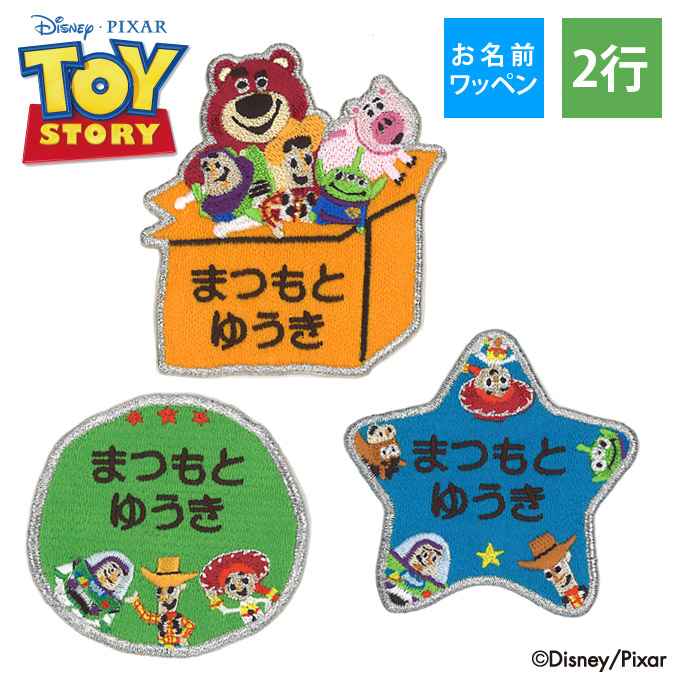 ■お名前ワッペン トイストーリー ポップゾーン ディズニー キャラ 2行 3枚セット ネームワッペン アイロン 入園 刺繍 プレゼント OR