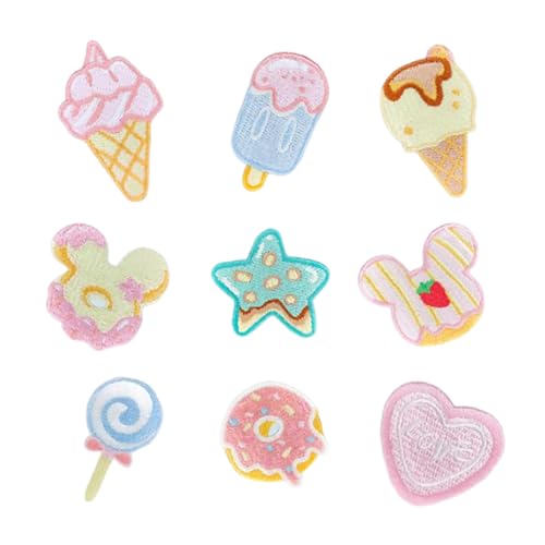 ■アイロン ワッペン スイーツ ドーナツ アイス 9枚セット おしゃれ パッチ 補修 刺繍 アップリケ DIY 女の子 男の子 かわいい 装飾 送料無
