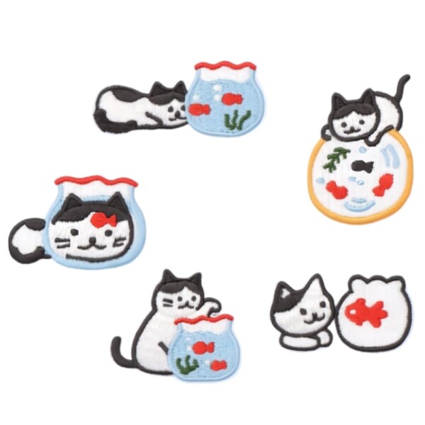 ■JYF.QUANYI 猫と犬 ワッペン アイロン アップリケ 女の子 子供 小さい ドッグ キャット 刺繍 入園 かわいい (猫(魚捕り)(5点セット))