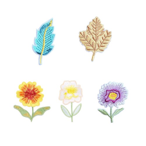 ■アイロン ワッペン 動物 アルファベット ベルクロ アップリケ おしゃれ 刺繍 入園 (木の葉と花 5点 セット)