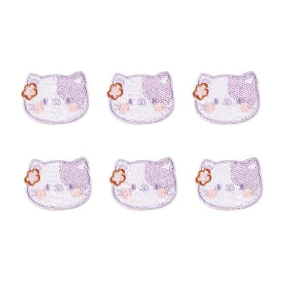 ■【送料無料】子供 ワッペン アイロン 男の子 アップリケ 女の子 小さい 刺繍 入園 かわいい (紫の猫 6点セット)