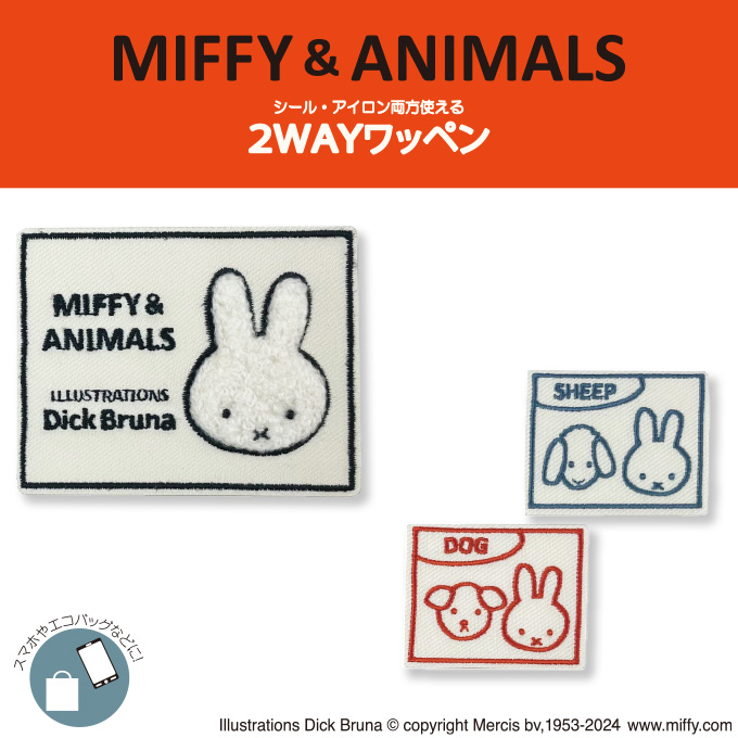 ■MIFFY & ANIMALS ワッペン DickBruna ミッフィー アイロン シール かわいい 刺繍 キャラクター グッズ プレゼント 服