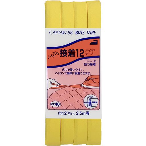 ■CAPTAIN88 キャプテン ふちどり 接着 12 バイアステープ 12MM幅×2.5M巻 #361 黄色系 アイロン 接着 CP40