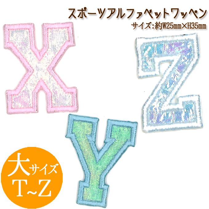 ■文字ワッペン アルファベット 大 スポーツ T〜Z 数字 名前 アイロン 男の子 女の子 名入れ お名前 文字 アップリケ CP