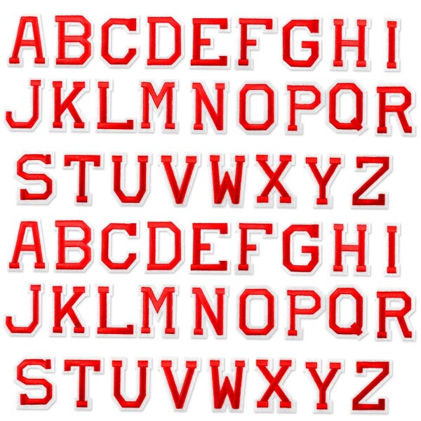 ■52枚 アルファベット A-Z 刺繍ワッペン アイロン アップリケ ワッペン 幼稚園 保育園 かわいい 刺しゅうパッチ (レッド)