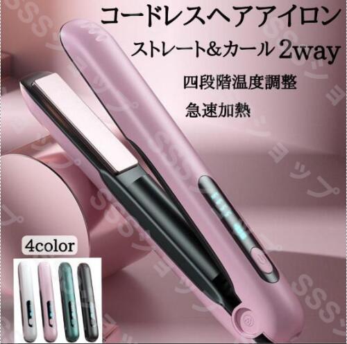 ■ヘアアイロン コードレス ストレート&カール 2Way ミニ カール アイロン LCD液晶 USB充電 4段温度調節 急速加熱 携帯 旅行用