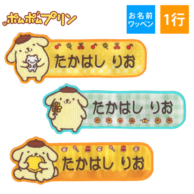 ■お名前ワッペン ポムポムプリン サンリオ キャラ 1行 3枚セット ネームワッペン アイロン 入園 刺繍 プレゼント OR