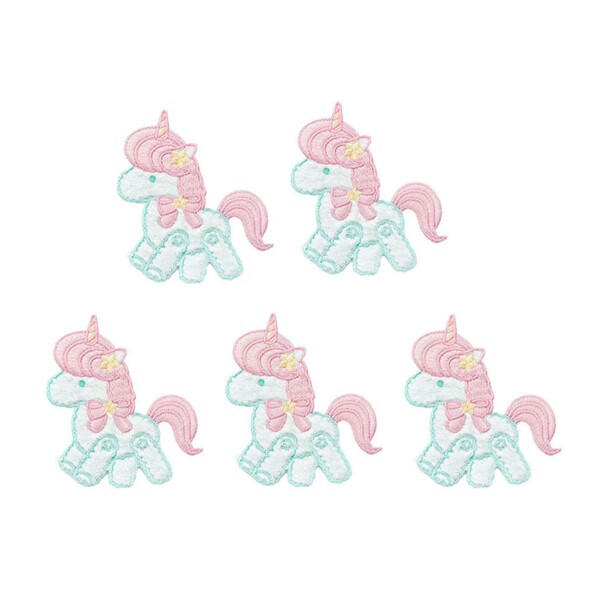 ■【送料無料】アイロンワッペン 動物 ベルクロ ワッペン アイロン アップリケ おしゃれ 刺繍 (ユニコーン 5点 セット)