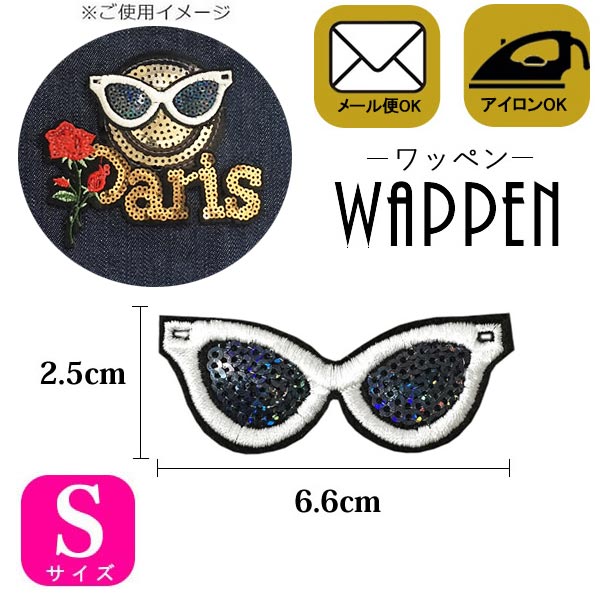 ■ワッペン スパンコールワッペン アイロン接着 縦2.5cm×横6.6cm Sサイズ サングラス めがね アップリケ アイロン 手芸母の日 プレゼント