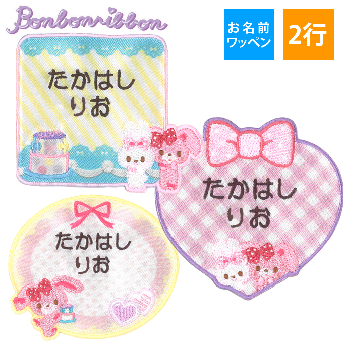■お名前ワッペン ぼんぼんりぼん サンリオ キャラ 2行 3枚セット ネームワッペン アイロン 入園 刺繍 プレゼント OR