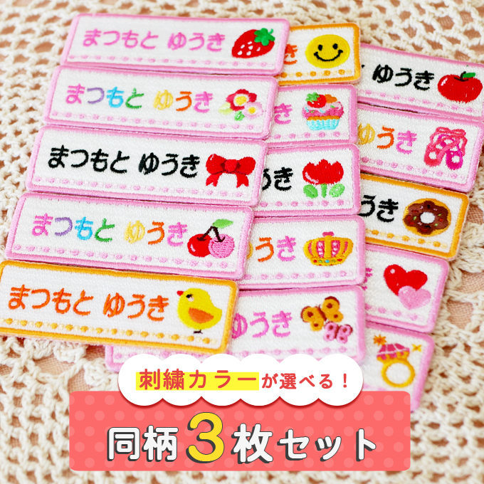 ■お名前ワッペン 長方形 ピンク系 同柄3枚 ネームワッペン アイロン 入園 入学 刺繍 プレゼント OR