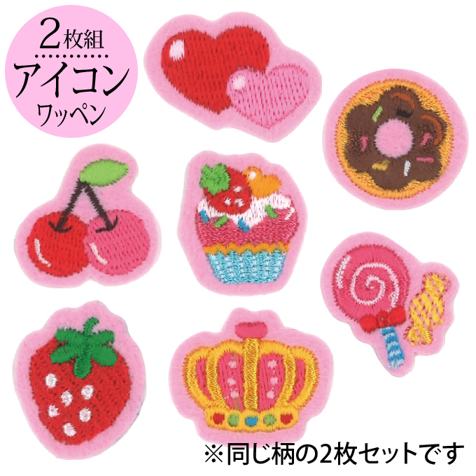 ■ワッペン アイコン ピンク ハート イチゴ 2枚セット アイロン 刺繍 マーク シンプル プレゼント 服 ワンポイント かわいい