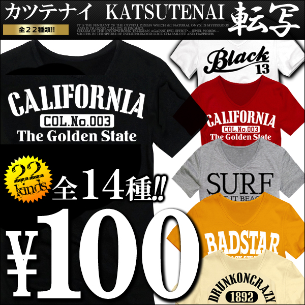 ■A全14種 お試し100円 かつてない価格のKATSUTENAI転写シート 無地Tシャツ アイロン プリント シール 深V メンズ半袖【 ktn1 】