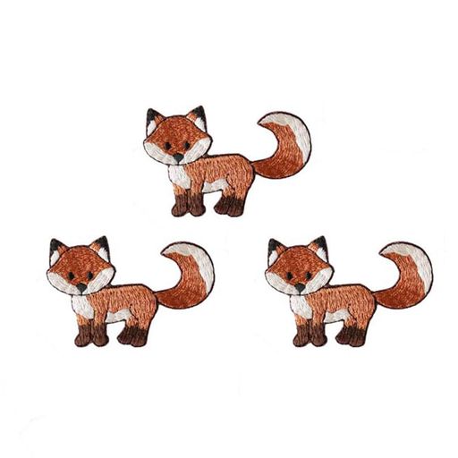 ■アイロン ワッペン 男の子 女の子 ベルクロ 動物 アイロン アップリケ おしゃれ 刺繍 (キツネ 3点 セット)