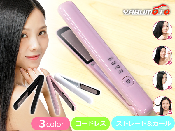 ■■ヘアアイロン 充電式 コードレス ストレート アイロン MF001 ピンク 4段階温度調節 2way コンパクト レディース メンズ 送料無料