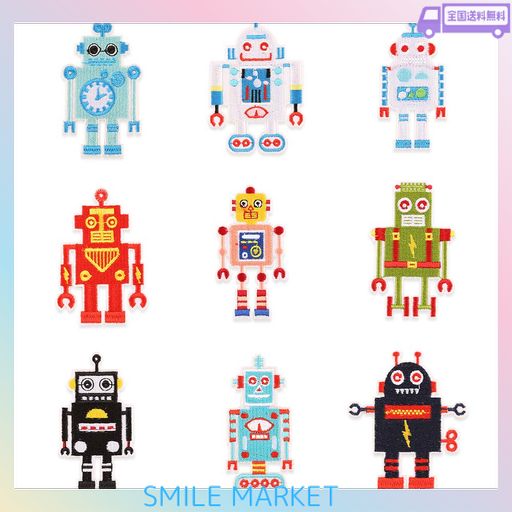 ■刺繍 ワッペン アイロン パッチ アップリケ ロボット 9枚セット アイロン接着 縫い付け 補修 DIY 縫製 手芸 ハンドメイド キッズ 飾り 可