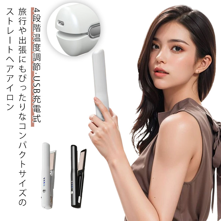 ■ミニ ヘアアイロン ストレート カール ヘアーアイロン USB 充電式 コンパクト ストレートアイロン ヘアアレンジ アイロン 巻き髪 前髪 コ