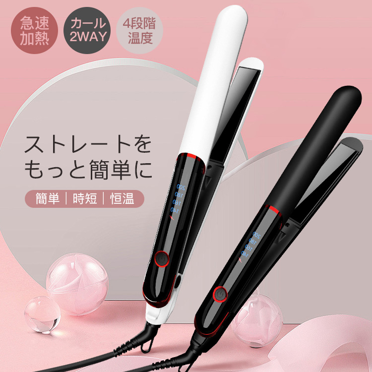 ■[20%off]ヘアアイロン ミニ ストレート カール 急速加熱 4段階温度 カールアイロン 持ち運び便利 マイナスイオン アイロン セラミック コ