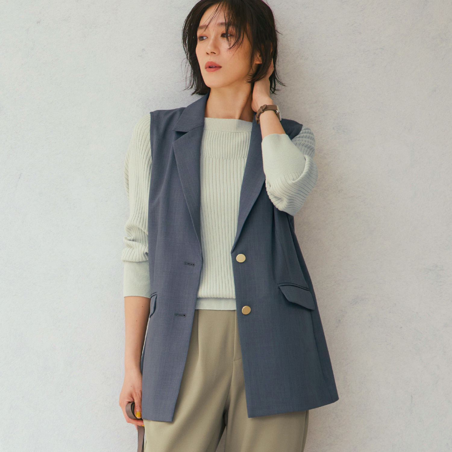 ―デザイン・スタイリング―・お尻まで隠れる安心のロング丈で大人が着やすいベスト・きちんと感のあるテーラーカラーでありながら、優しい曲線を創ることで女性らしさも両立・アームホールがゆったりしているため、ドルマンやワイドスリーブとも合わせやすい・ウエスト位置を高く見せる少し上に配置したポケット・着こなし次第でロングシーズン活躍―素材―・ハリ感があるのにストレッチ性に優れていて動きやすい―機能―・洗濯機で洗えてシワになりにくいのも魅力SN by Style Note(エスエヌ バイ スタイルノート)『Style Note(スタイルノート)』の頭文字を取ったSN。手始めにまずこちらから。センスはそのままに、チャレンジしやすい価格でお届けするスタイルノートのセカンドラインブランドです。