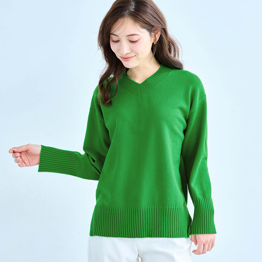 ■【ベルメゾン】洗濯機で洗えるVネックニットプルオーバー