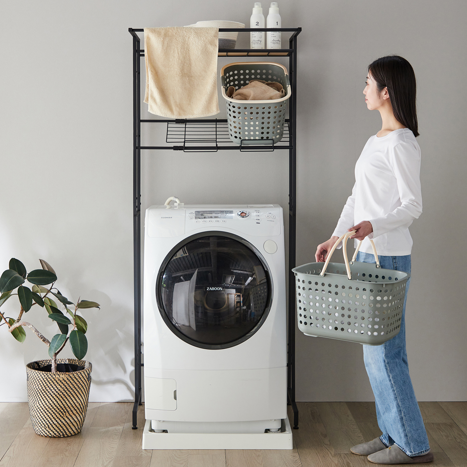 ■【ベルメゾン】設置簡単 木目調天板の伸縮式洗濯機ラック