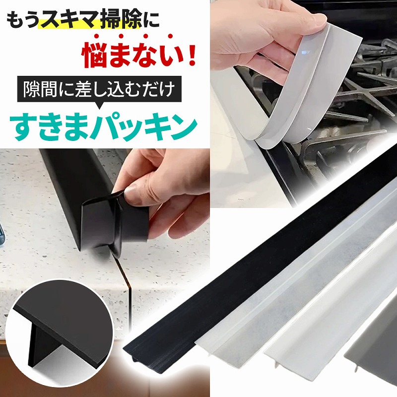 すきまパッキンは、家中のあらゆる隙間を埋めて、水漏れ、油汚れ、ホコリの侵入を防ぐ、便利なアイテムです。柔軟性のあるシリコン素材でできているため、どんな隙間にもピッタリとフィットします。キッチンカウンターやシンク周り、洗面台と壁の隙間など、様々な場所に合わせてお使いいただけます。ハサミで簡単にカットできるので、必要な長さに合わせて自由に調整できます。すきまパッキンは、汚れにくく、水洗いもできるので、お手入れも簡単です。耐熱性にも優れているので、コンロ周りなど、高温になる場所でも安心して使用できます。商品名:すきまパッキン素材:シリコンサイズ:長さ65cm×横5.5cmカラー:ホワイト、ブラック、クリア、グレー重量:80g耐熱温度:-40度〜230度販売方法:4色からお選び頂けます対応隙間サイズ:2mm?20mm