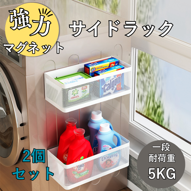 ラック マグネットラック 耐荷重約5kg 錆びない 冷蔵庫サイドラック マグネット 収納 スパイスラック 磁石ラック 洗濯機 洗剤 収納ラック 調味料 保管 棚 横 テーブル 隙間 強力 多機能 洗面所 シャワー バスルーム 浴室用 お風呂 水切り 壁掛け 洗濯機周り 収納アイデア