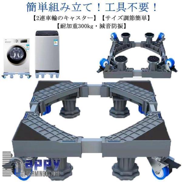 ■洗濯機 置き台 洗濯機台 キャスター付き 幅/奥行41-64cm 4足8輪 洗濯機 冷蔵庫 かさ上げ 台 洗濯機パン 排水パン 引っ越しツール 360