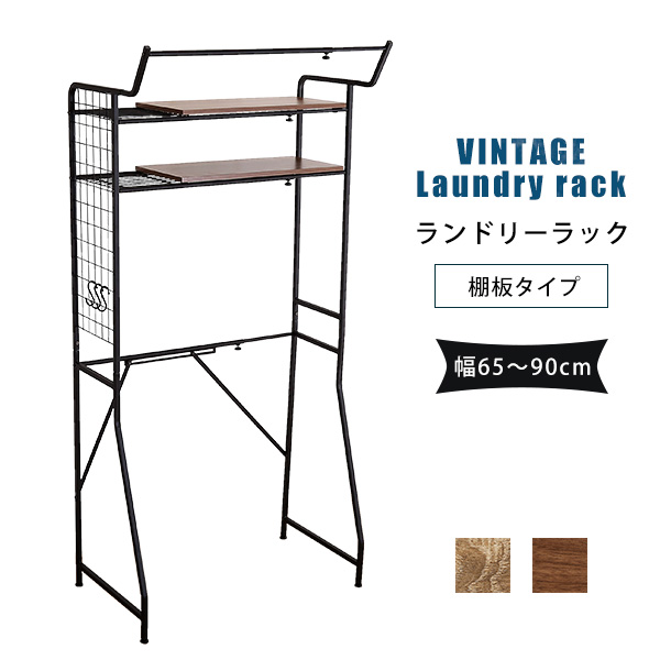 ■【幅65〜90cm】ヴィンテージ ランドリーラック 棚板タイプ 2色対応 ランドリー ラック おしゃれ 洗濯棚 棚 収納 スリム 洗濯 洗濯機 すき