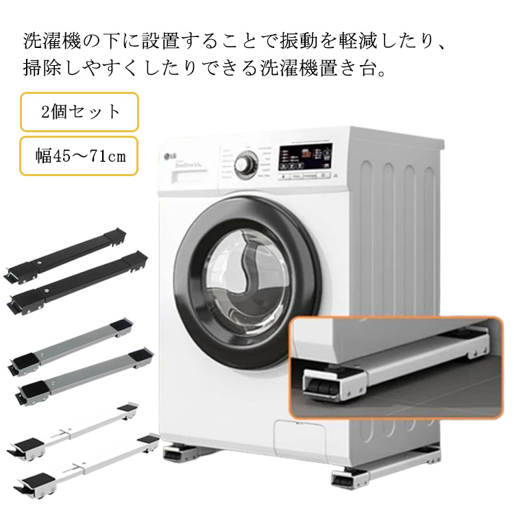■洗濯機 置き台 キャスター付き かさ上げ台 かさあげ台 幅45〜71cm 伸縮式 洗濯機 冷蔵庫 置き台 洗濯機 スライド台 滑り止めマット スト
