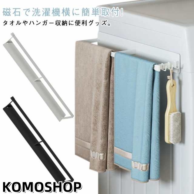 ハンガー収納 洗濯機 2連 マグネット タオルバー フック付き 浴室 タオルハンガー 掛け 横 洗面所 洗濯機 タオル掛け サイド ハンガー ラック 収納 ラック 棚 フェイスタオル バスタオル タオル タオル干し 洗濯機 洗濯機ラック ハンガー掛け