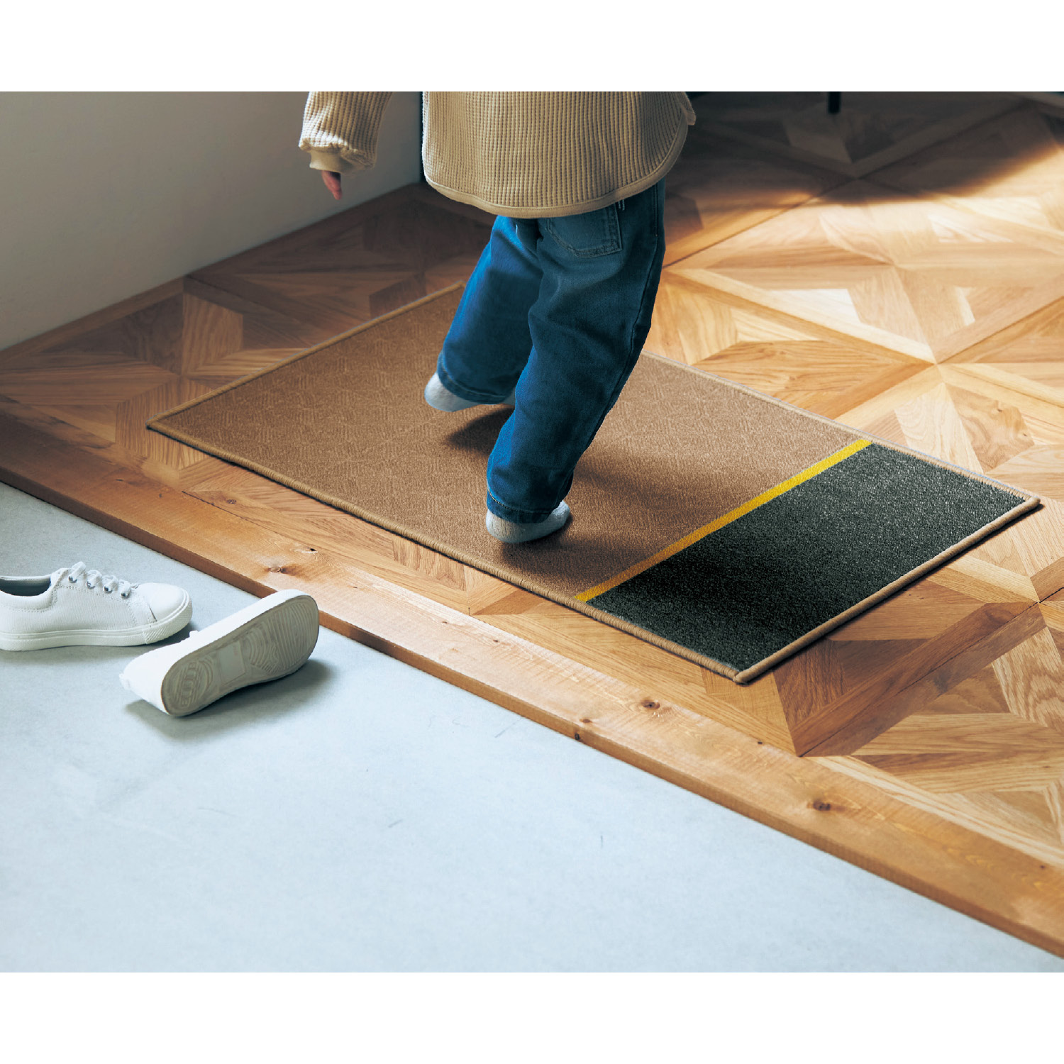 汚れが落ちやすい素材を使った玄関マット。洗ったらすぐきれいに薄手で軽く、扱いやすい。洗濯機で洗えます。すべり止めシートを2枚付けてお届け(カットして四隅に貼って使用するとよりずれにくいのでオススメ)ミックス調のパイルで深みのある色合い。黄色のラインもスタイリッシュな雰囲気です。【ベルメゾンデイズ/BELLE MAISON DAYS】ベルメゾンデイズ は、「今日より明日、明後日が楽しくなる暮らしの提案」をコンセプトとしたベルメゾンを一歩リードするオリジナルブランドですどの商品を組み合わせても居心地の良い 美しい空間がつくれるように考えられています