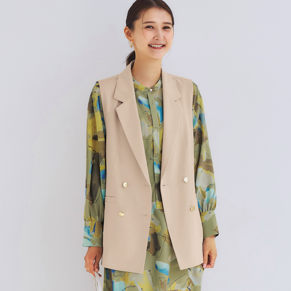 ―デザイン・スタイリング―・きちんとした印象の襟付きジレはオンオフどちらにも対応・ジャケット代わりとしても活躍・左右のポケットがウエスト位置を高く見せてすっきりとした印象に―素材―・上品な光沢のあるツイル素材・きちんとした印象のやわらかな着心地Style Note(スタイルノート)2000年のデビュー以来、長きにわたりご好評を頂いている ベルメゾンのオリジナルブランド。トレンドを適度に取り入れながら、素材・仕立て・シルエットに至るまで、大人の女性にふさわしいクオリティを追求し、お洒落が楽しくなるスタイルをお届けします。