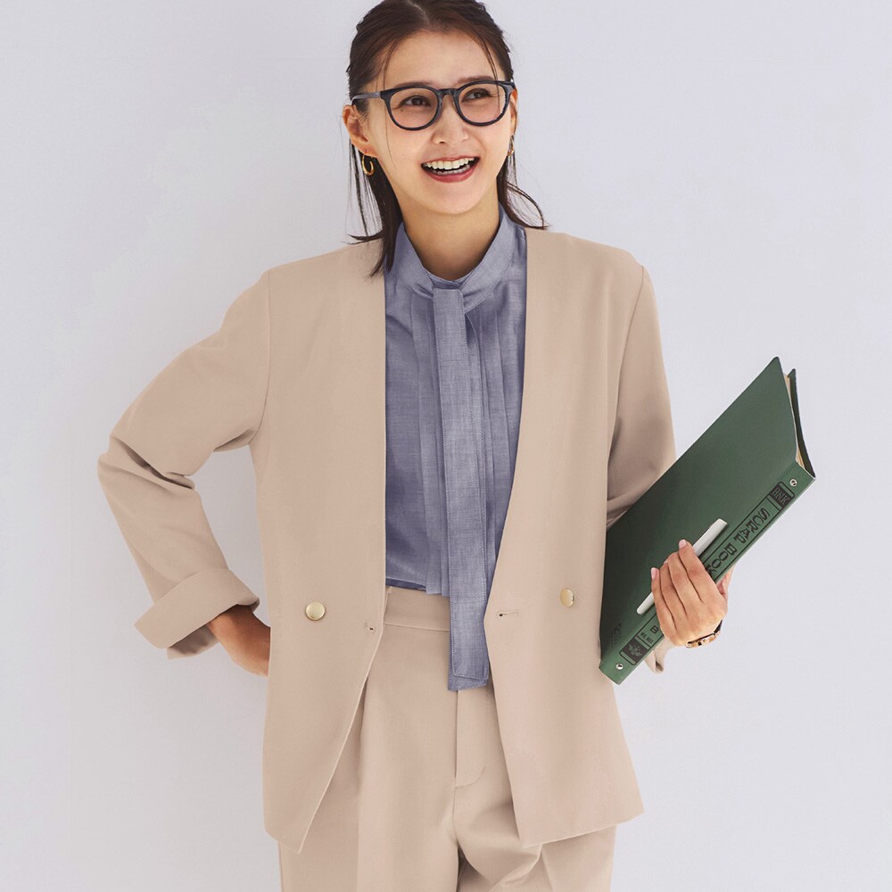 ―デザイン・スタイリング―・ラクに羽織れて体型カバーも叶うダブル合わせのノーカラージャケット・袖口にはスリット入り・裏地なしだから3シーズン着られる―素材―・上品な光沢のあるツイル素材・きちんとした印象のやわらかな着心地Style Note(スタイルノート)2000年のデビュー以来、長きにわたりご好評を頂いている ベルメゾンのオリジナルブランド。トレンドを適度に取り入れながら、素材・仕立て・シルエットに至るまで、大人の女性にふさわしいクオリティを追求し、お洒落が楽しくなるスタイルをお届けします。