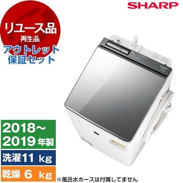 ■【リユース】 アウトレット保証セット ES-PU11C シルバー SHARP [洗濯乾燥機 (洗濯11.0kg / 乾燥6.0kg)] [2018〜2019年製]