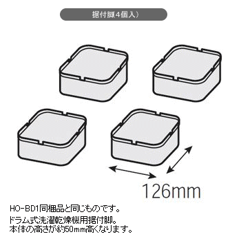 ◇ドラム式洗濯乾燥機用据付脚。 ◇本体の高さが約50mm高くなります。(HO-BD1同梱品と同じものです。) ※適合機種 BD- V2000 / V2 / V3100 / V2100 / V1100
