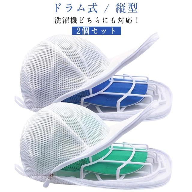 【2個セット】2点セット キャップウォッシャー 帽子 洗濯 帽子洗い 洗濯機 ドラム式 帽子用 洗濯ネット 型崩れ防止 キャップ 野球帽 洗濯グッズ お手入れ 便利グッズ