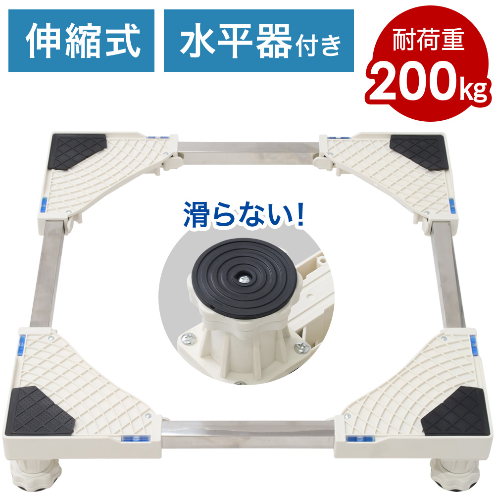 ■洗濯機台 洗濯機 台 置き台 かさ上げ 台車 冷蔵庫 アジャスター 伸縮式 縦型 ドラム式 設置 耐荷重200kg 洗面所 脱衣所 水平器付き