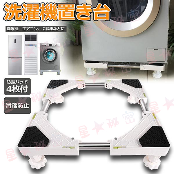■洗濯機置き台 洗濯機 台座かさ上げ かさ上げ台 冷蔵庫置き台 高さを調節可能 ドラム式 全自動洗濯機 幅 奥行42 62cm対応 防振パッド付き