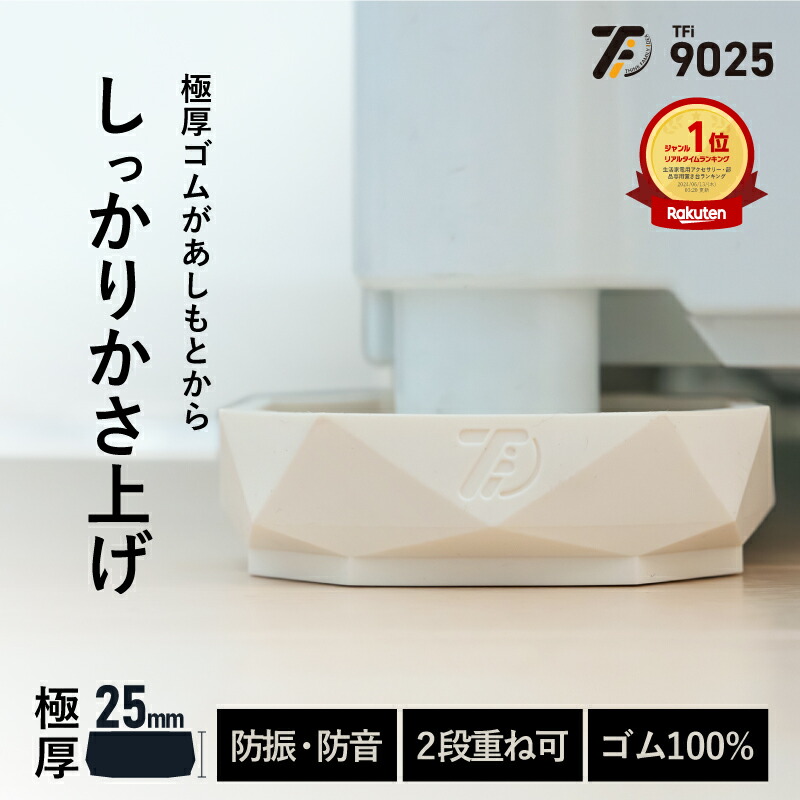 ■【メーカー公式】洗濯機かさ上げ台 防振・防音ゴムマット TFi-9025 ドラム式/縦型対応 洗濯機置き台 洗濯機 かさあげ 台 高さ調整 洗濯機