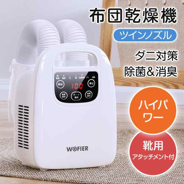 ■ふとん乾燥機 ダニ退治 速ぽかぽか ツイン立体ノズル 2組布団対応 布団干し 布団保護 靴乾燥 衣類乾燥袋付き 四段階温度調節 八段階タイ