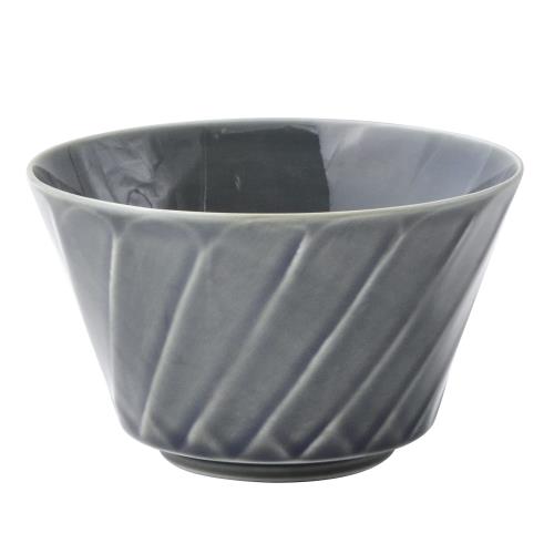 波佐見焼 一真窯 鉢 ボウル 小 約13cm 彫刻紋 藍墨 斜め彫 電子レンジ 食洗機可 11108