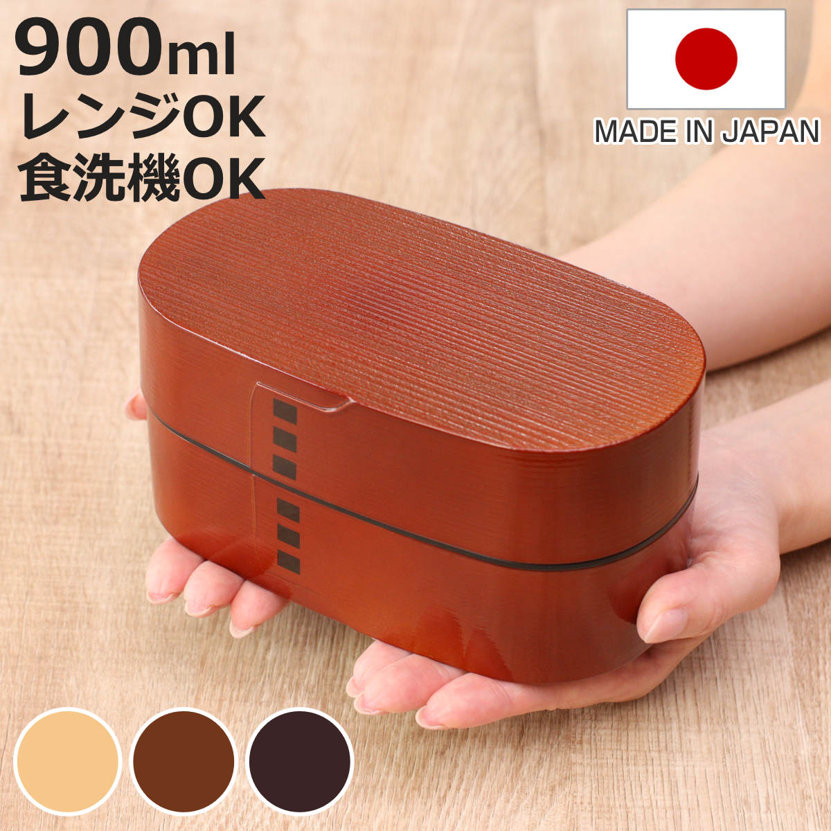 ■弁当箱 900ml わっぱ弁当箱 大 ( ランチボックス 和風 木目調 曲げわっぱ風 2段 男性 大容量 日本製 電子レンジ 食洗機対応 プラスチッ