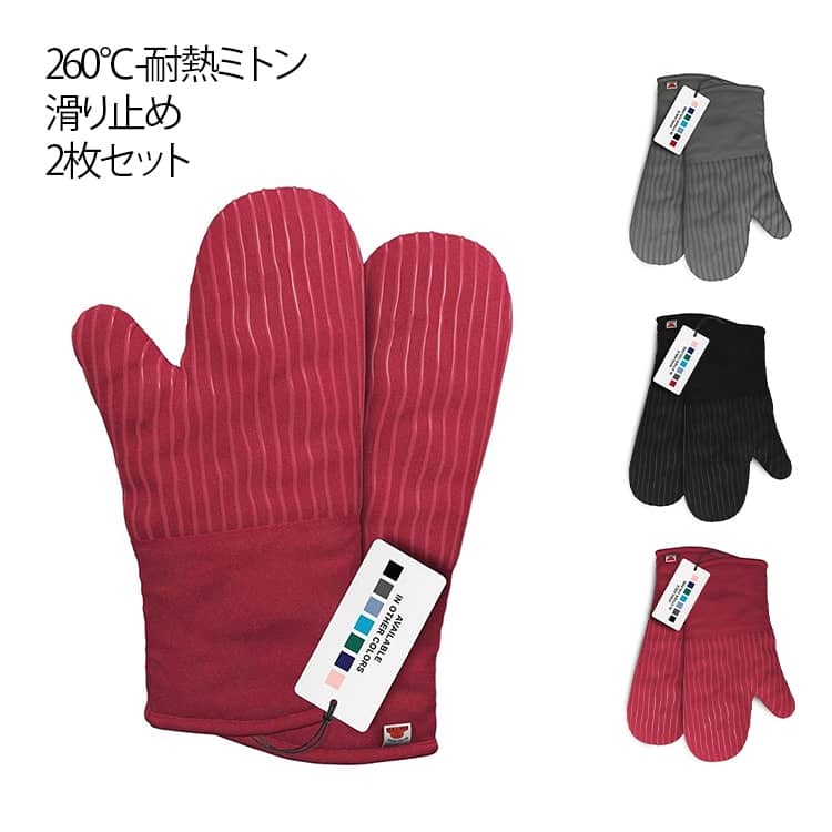 ■260℃ オーブンミトン 2枚セット 厚手 キッチングローブ 鍋つかみ シリコン 電子レンジ 左右セット 綿 コットン 耐熱グローブ 滑り止め