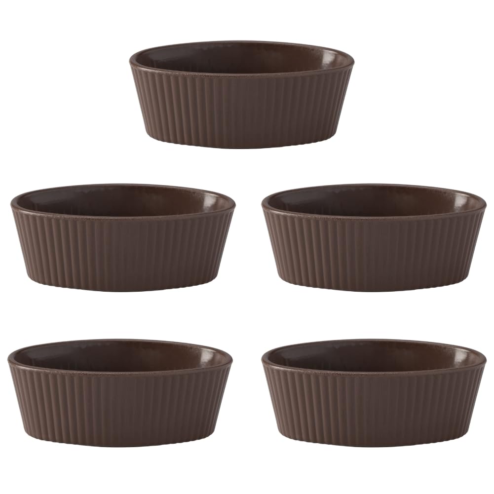 ■割れない耐熱ココット 小皿 スフレ 茶 ブラウン 9cm×6cm×高さ3cm 容量75cc 5個入り 耐熱200℃ 電子レンジ・食洗器対応 業務用 カフェ