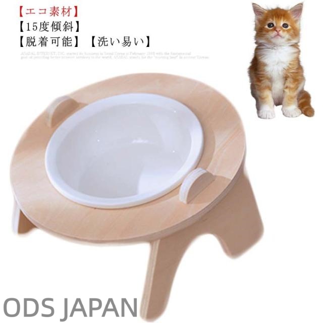 ■猫食器 フードボウル 木製 猫の頸椎を保護 猫 皿 陶器 15度の傾斜 食べやすい ご飯 餌入れ 水入れ 皿 食器台 滑り止め ボウル 電子レンジ