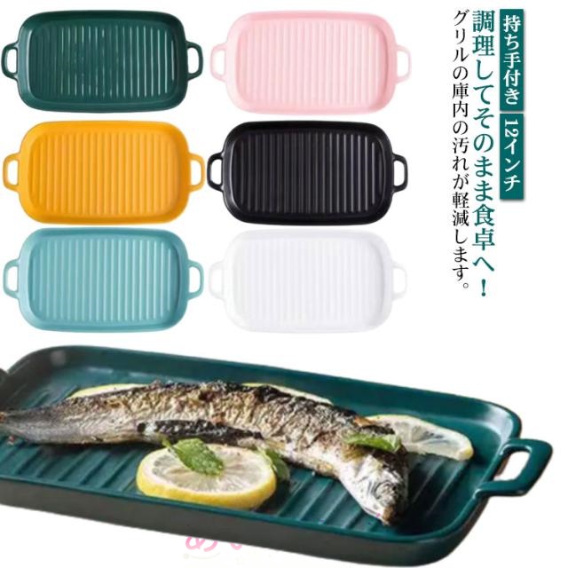 ■グリルパン 魚焼きグリル トレー 北欧 オーブン料理 プレート ロースター グラタン皿 電子レンジ 耐熱皿 セラミック グリルプレート 持ち